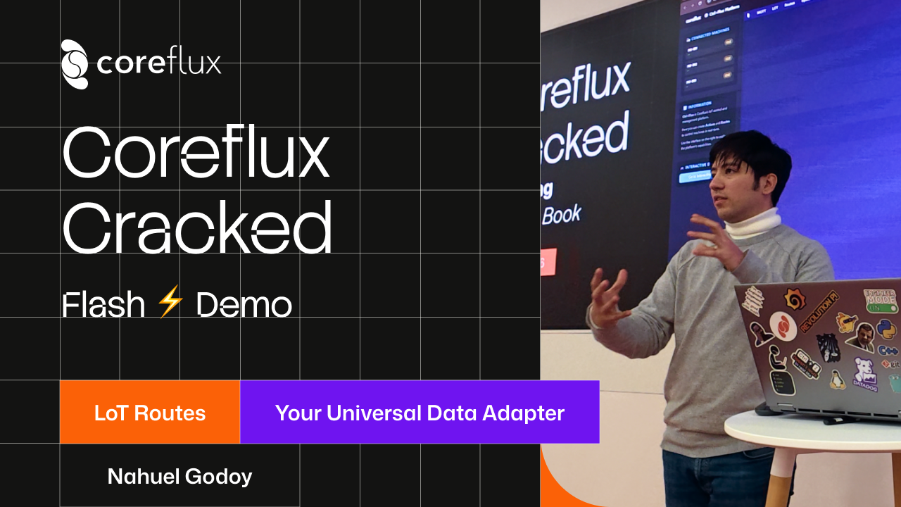 This guide is based on Nahuel Godoy's Flash Demo presentation at Coreflux Cracked, January 26, 2025. Nahuel is a full-stack developer at Coreflux working on both the broker and UI.